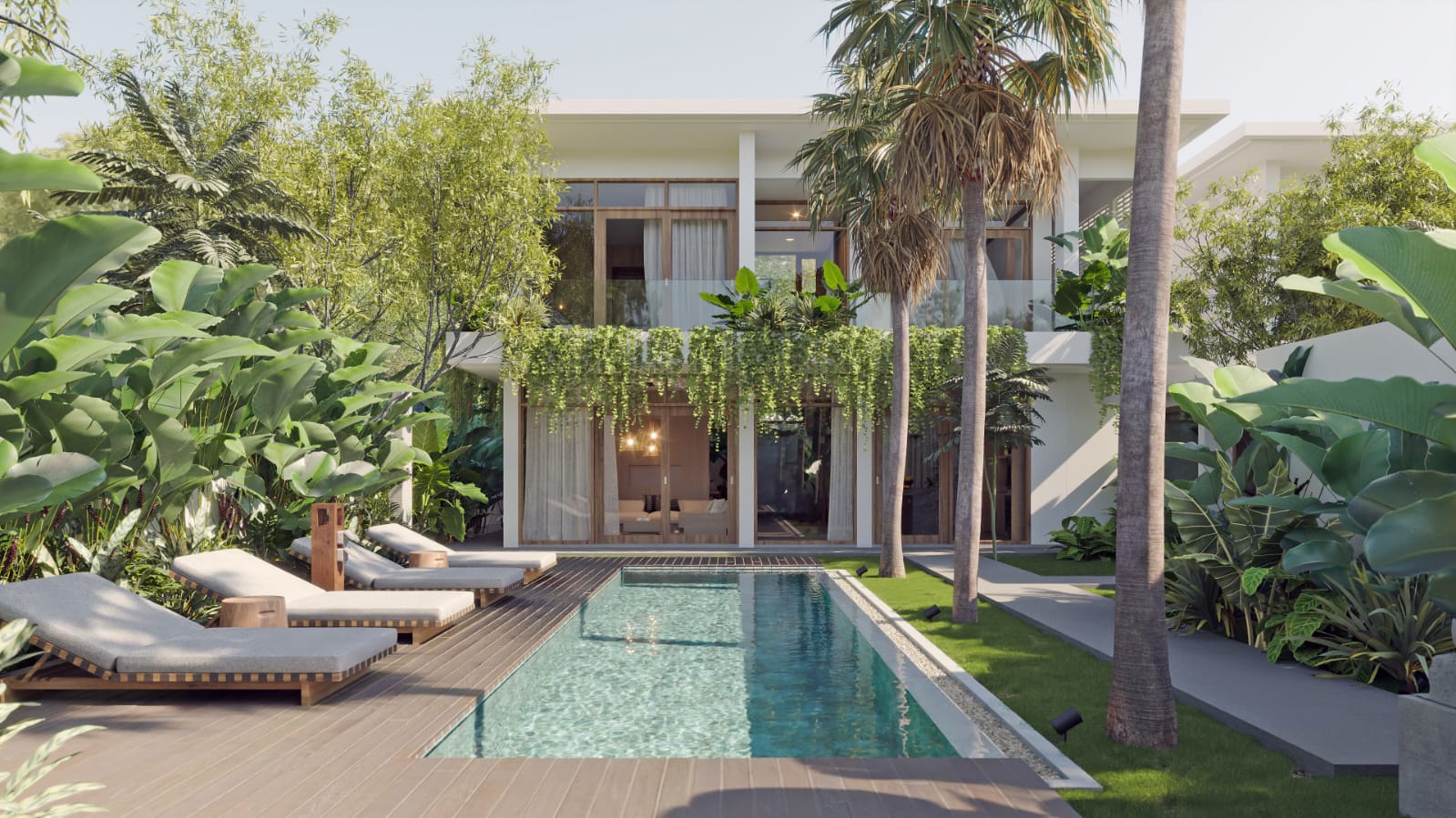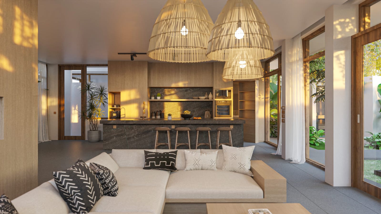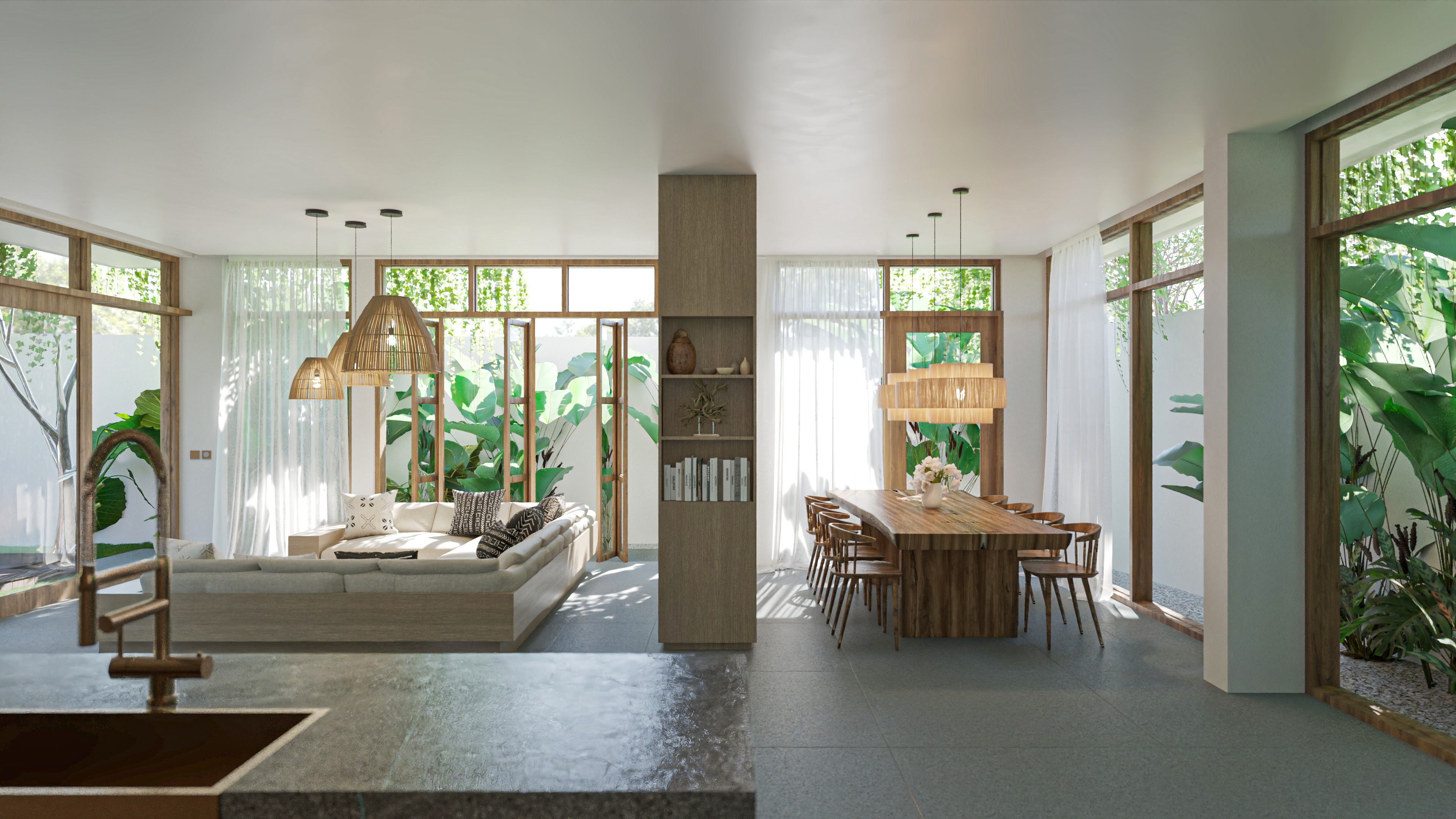 Villa Hanoman takes a smart architectural approach to maximize volume and flow. By positioning the two bedrooms on the upper level, the design dedicates the entire ground floor to an expansive, open-plan living space.