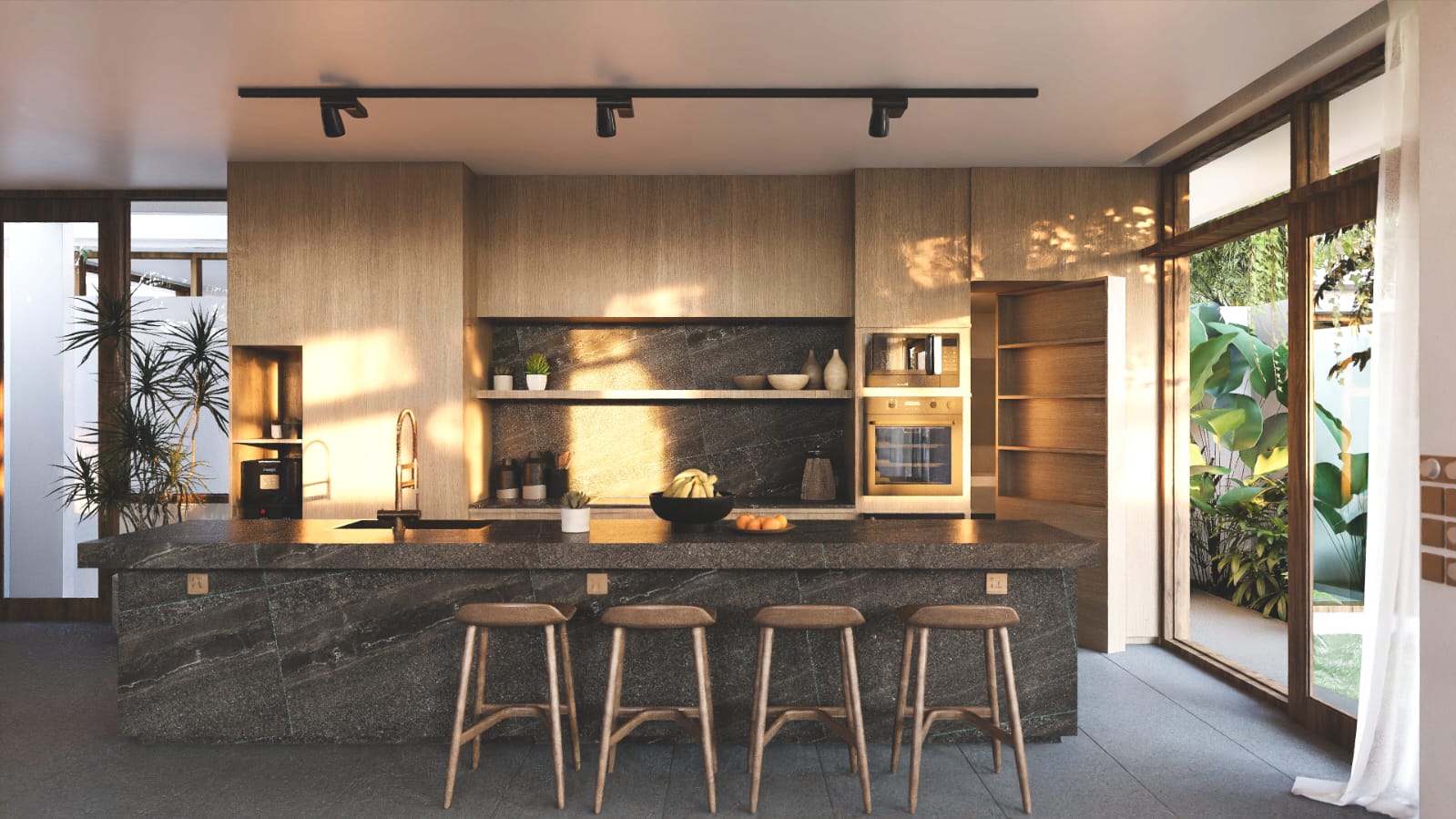 This layout creates a vast social sanctuary on the ground level that opens up completely to the outdoors. The interior living area transitions effortlessly onto a substantial sun deck and a large swimming pool, making the home feel incredibly spacious and bright.