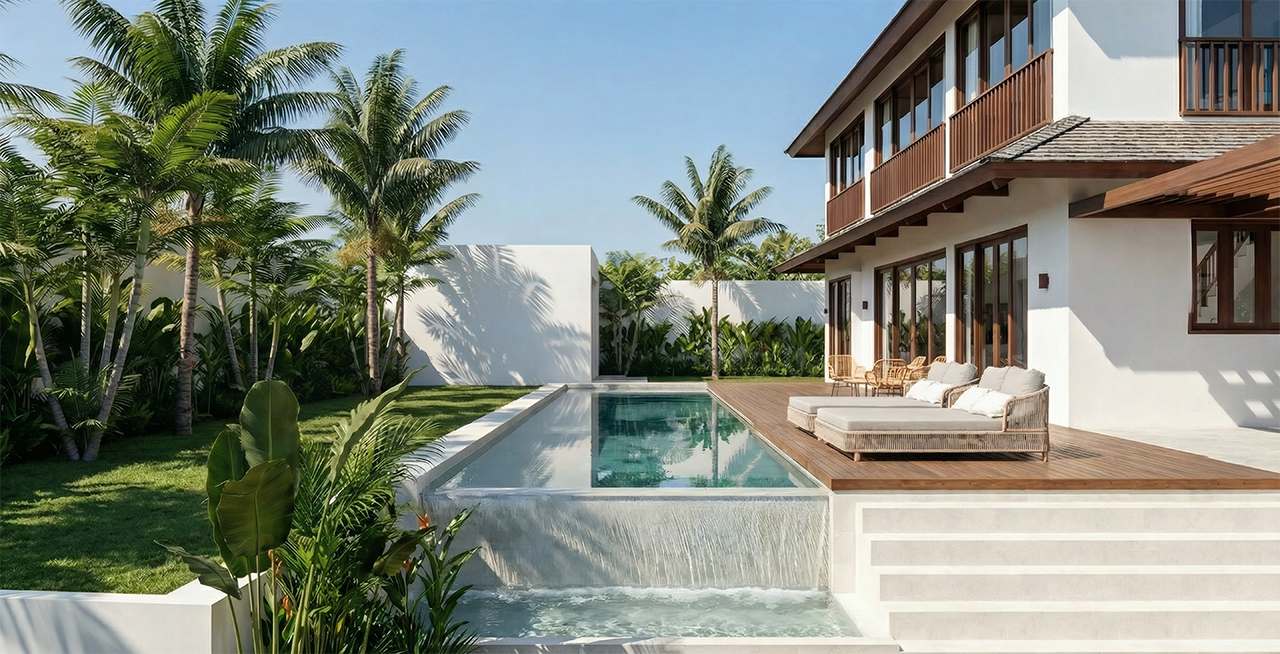 Villa Jiwa offers a sophisticated take on tropical modernism with a distinct Japandi influence. Spread across two thoughtfully designed levels, this four-bedroom home is built for both relaxation and entertaining.