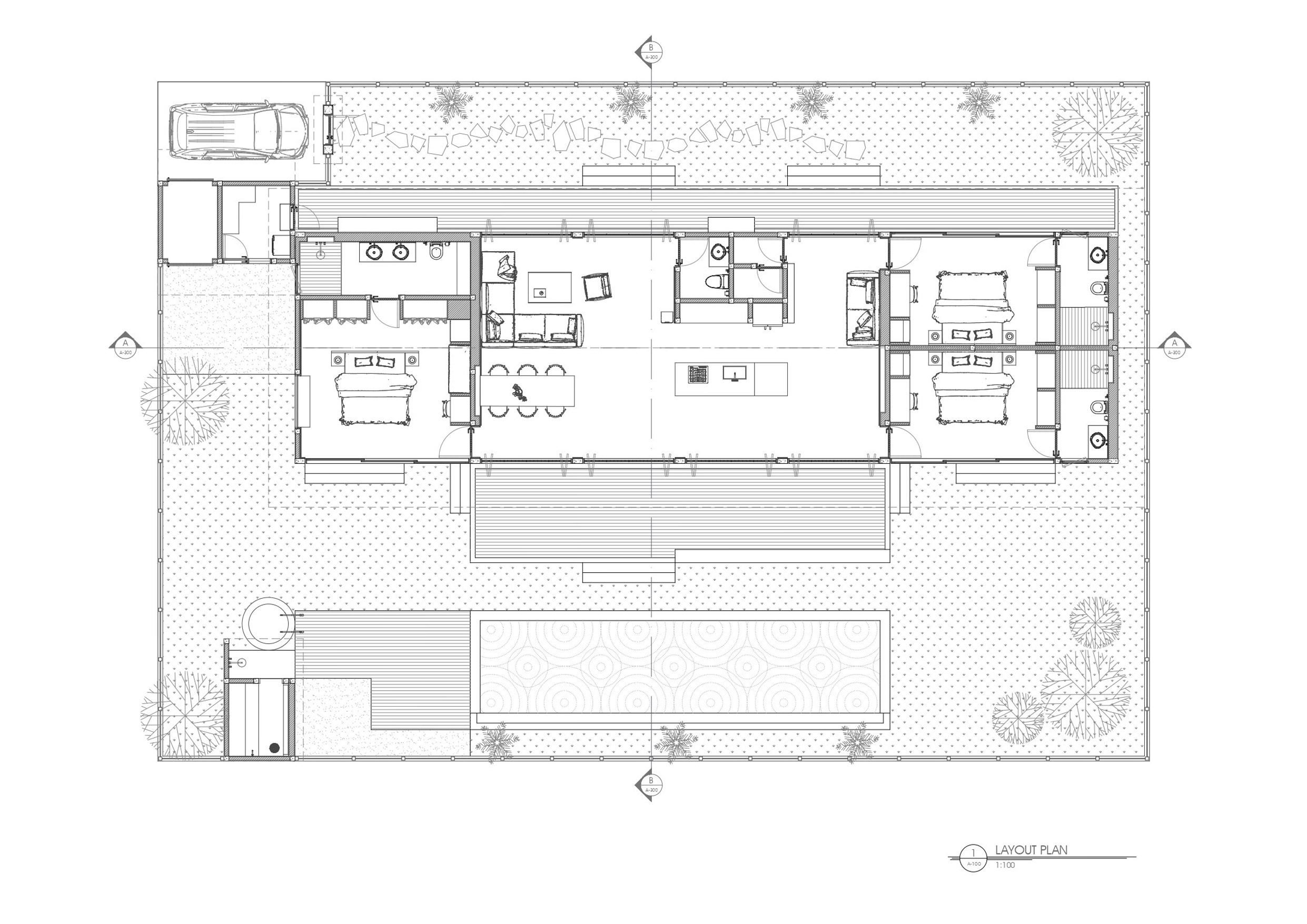 Designed for wellness and rooted in nature. This luxury one-level concept uses raw materials and open spaces to create a calming, grounded atmosphere.